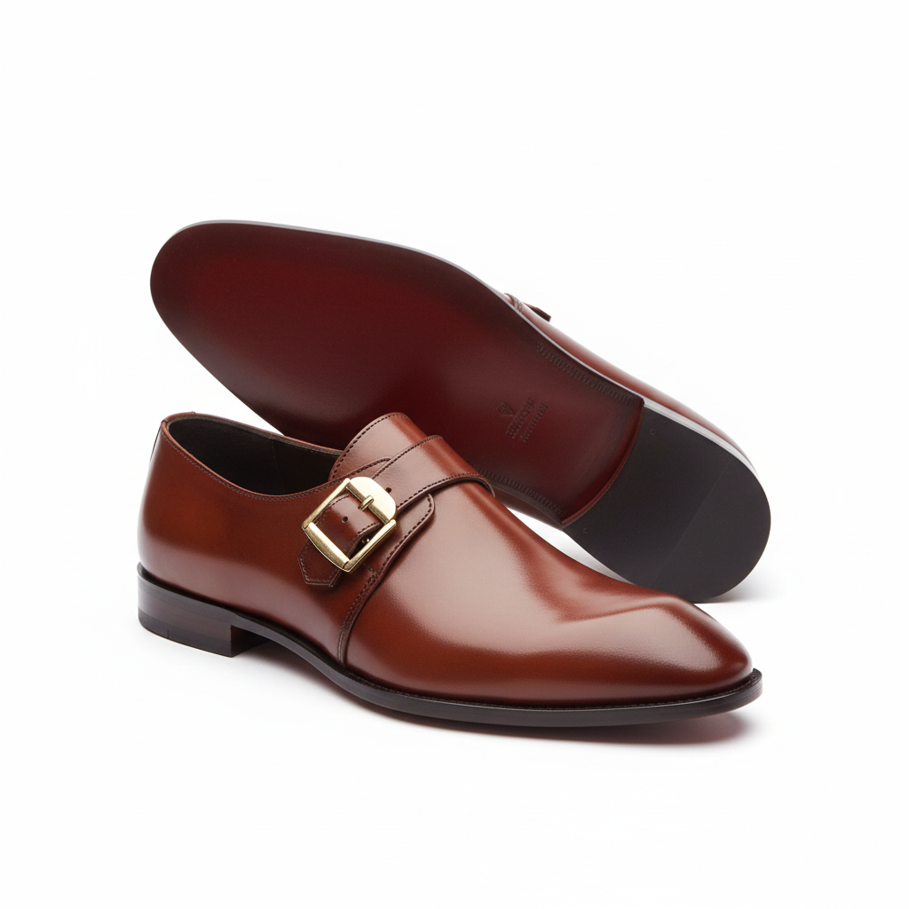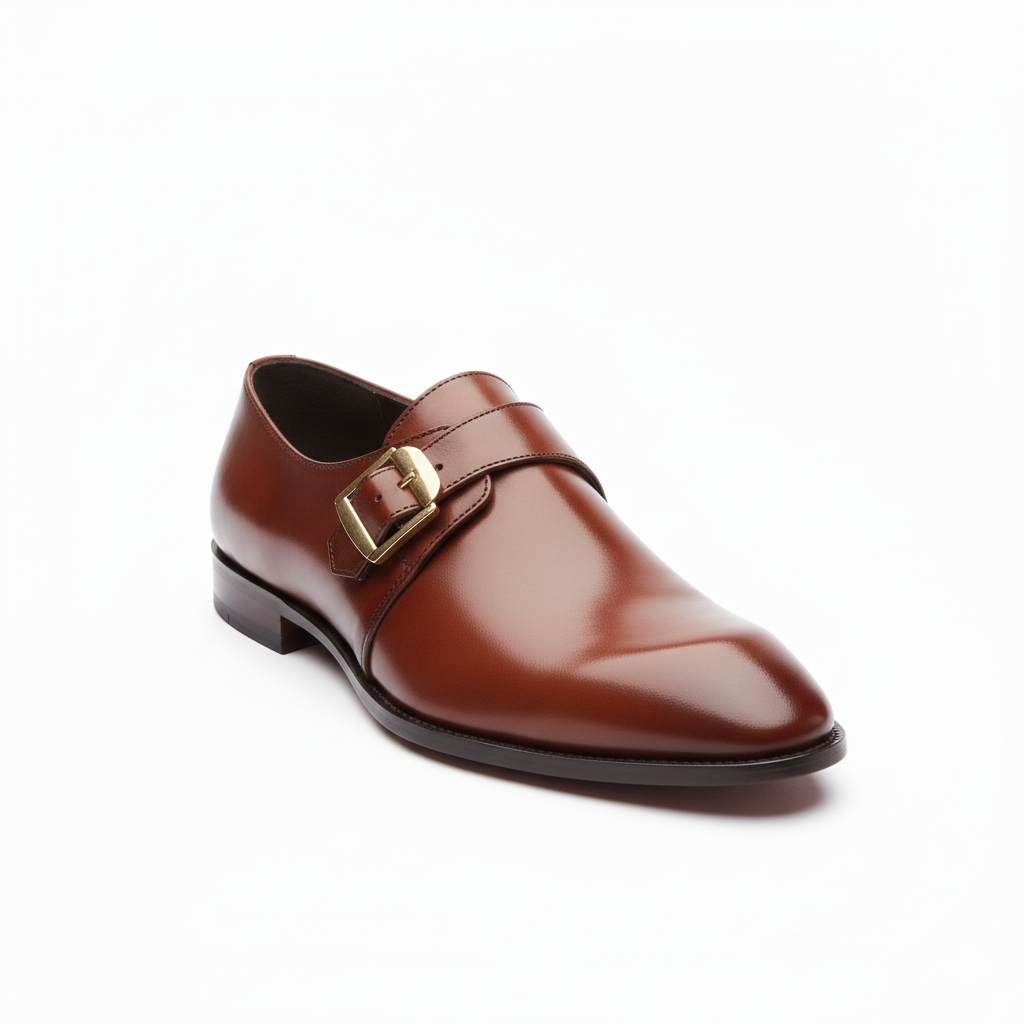 Monk Strap Design: Sleek single strap with gold-finish buckle adds a bold, contemporary twist to classic formalwear.